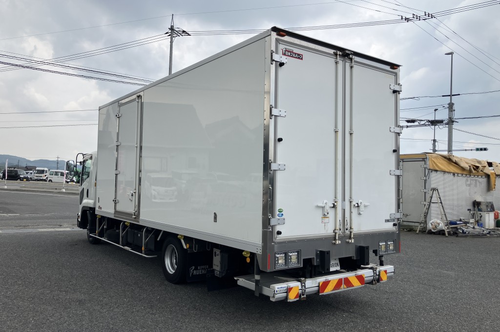 | 備考 | フルハーフ GLF No.E5G5853 冷凍機デンソー P28LN-P4-22S 格納ゲート新明和 RAK10-6485D No.S11003680 ラジコン 左サイド扉 床:システムフロア ラッシング2段 ワイド幅 リアエアサス 6速 3ペダル ヘッドライト:HID 燃料タンク:200L 温度設定 -13.5℃確認(外気33℃→-32℃設定 5時間稼働) |