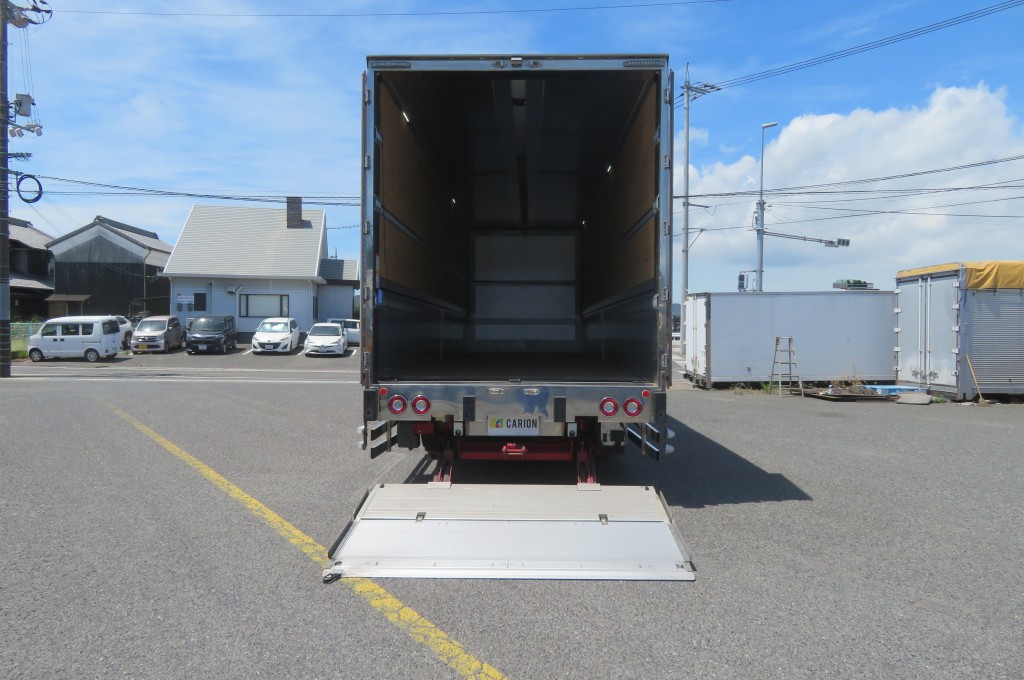 | 備考 | トランテックス 格納ゲート:極東開発 ラッシング2段 内フック9対 庫内灯4灯(LED) ハイルーフ アルミホイール リアエアサス ミラー・グリル・コーナー・バンパー・サイドガーニッシュ:メッキ ラジオ ETC バックモニター 床:板 プロシフト 燃料タンク:300L+200L | ||||