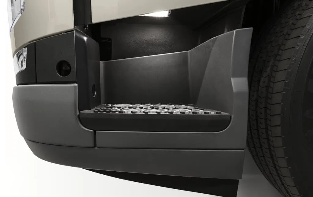 従来のアルミ製ステップに新たにプラスチック製の材質を加えた新しいステップは、雨天時などの滑りやすい状況下でもしっかりとしたグリップ力で、安全な乗降が行えます。